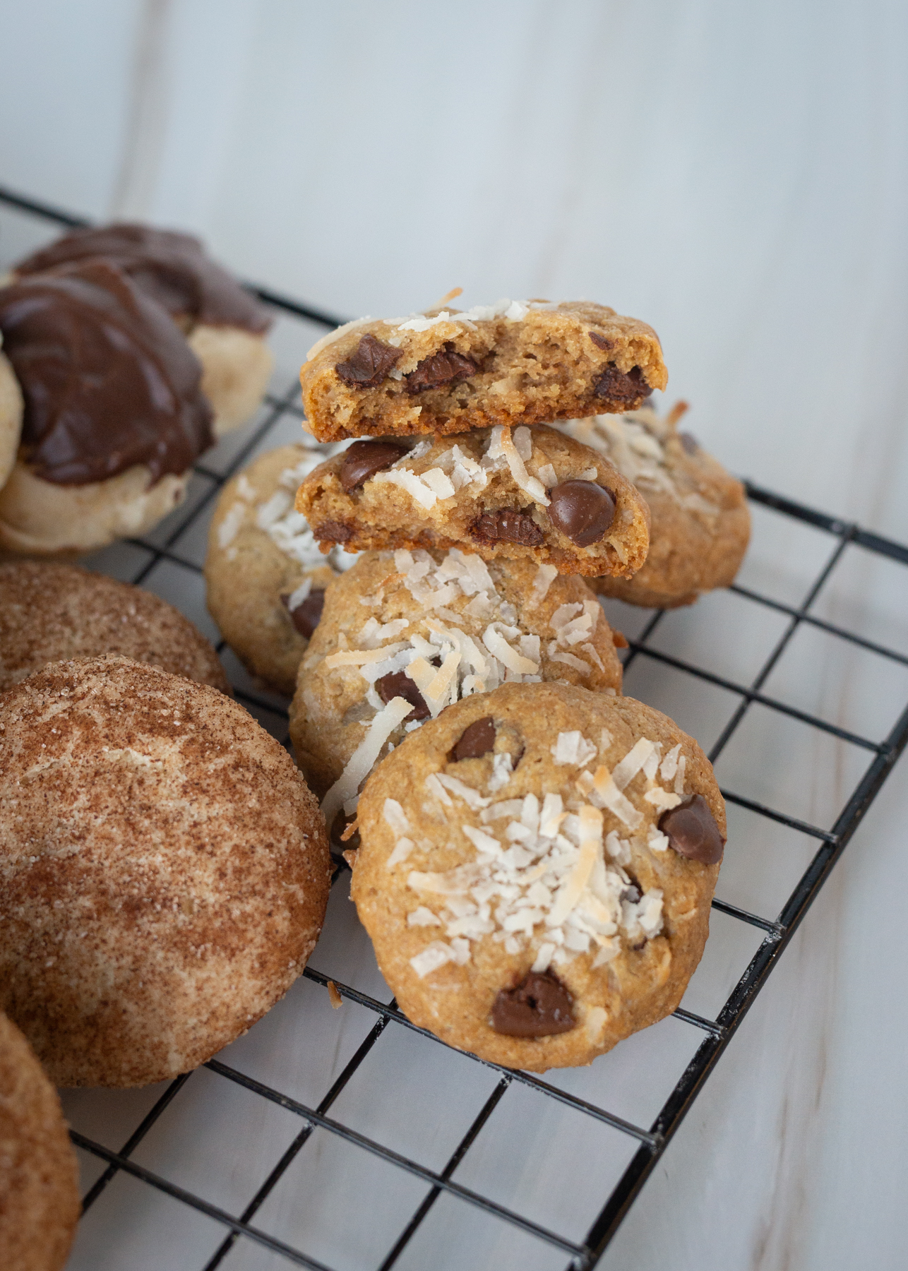 A dozen of Coconut chocolate Cookies Gluten free, made in a dedicated gluten-free kitchen, these cookies are safe for celiacs and ideal for families looking for treats they can trust—without the dryness or odd aftertaste often associated with gluten-free baking.