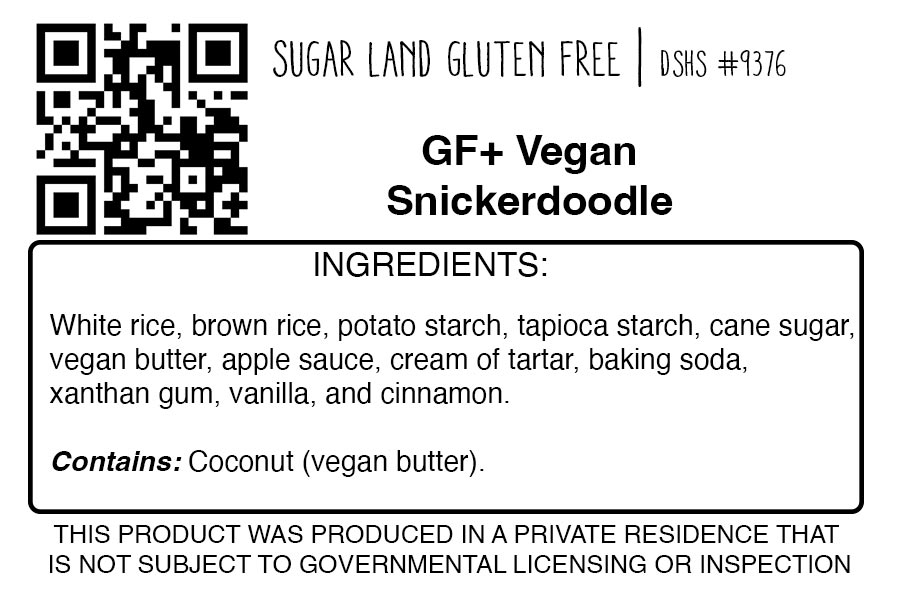 Soft, chewy, and coated in a blend of cinnamon and sugar, these Vegan Snickerdoodle Cookies are a timeless classic—made gluten free, dairy free and egg free without sacrificing flavor or texture. Each cookie has a tender center with lightly crisp edges and that signature snickerdoodle warmth. They’re perfect for anyone with dietary restrictions, but so good that no one would ever guess they’re gluten free or vegan. Made in a dedicated gluten-free kitchen, these cookies are safe for celiacs and ideal for families looking for treats they can trust—without the dryness or odd aftertaste often associated with gluten-free baking.