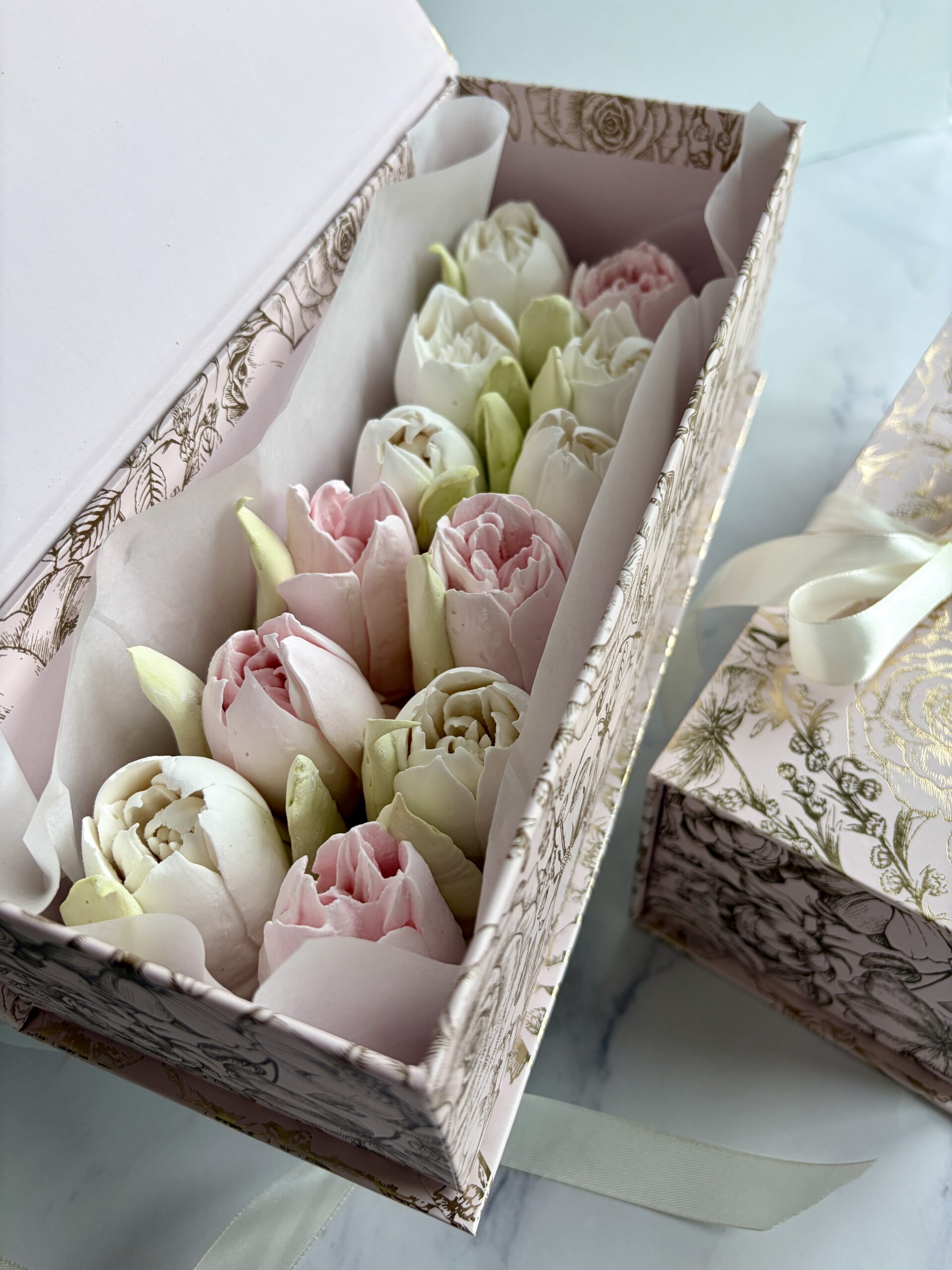 Delicate, airy, and beautifully shaped, our Zefir Flowers are a light confection with a soft, marshmallow-like texture that melts in your mouth. Crafted in small batches and piped by hand, they make a stunning edible decoration or a sweet, elegant treat on their own.